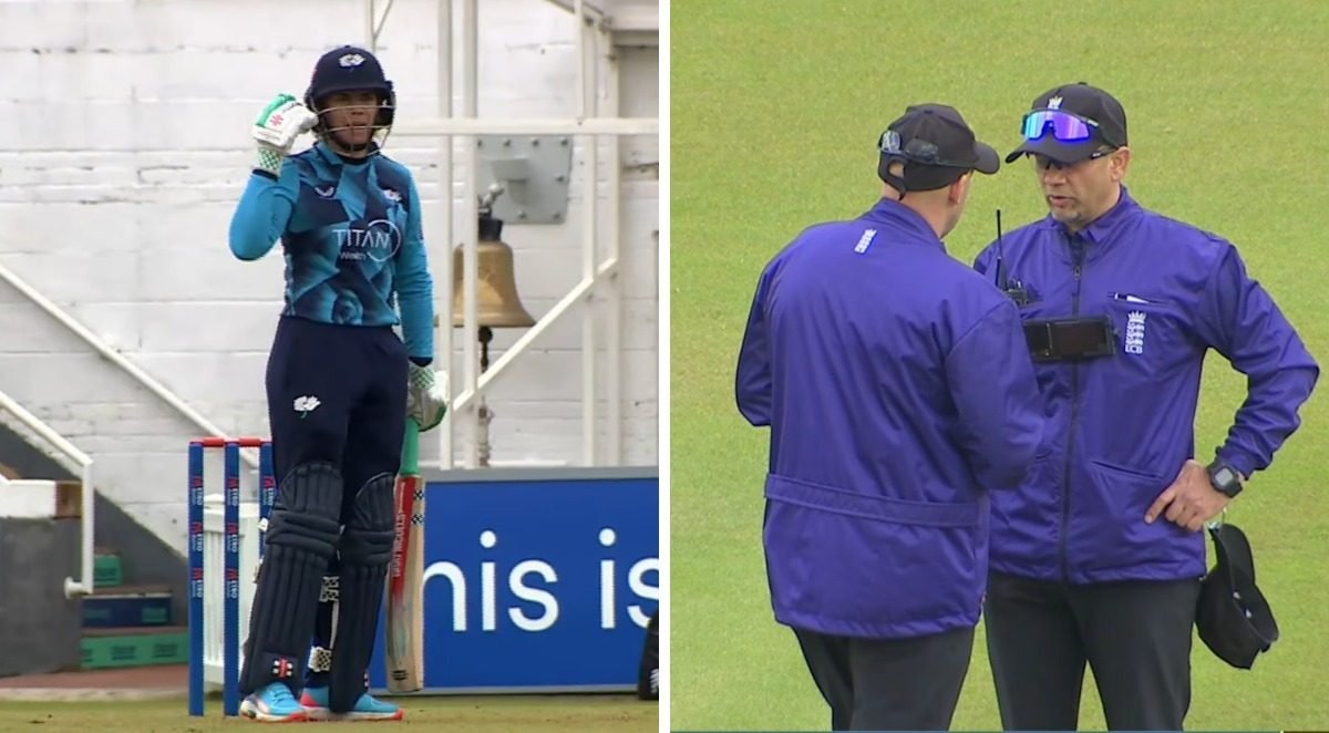 Surrey were awarded five penalty runs after Yorkshire opener Lauren Winfield-Hill ‘showed serious dissent’ following being given out caught behind for 60.